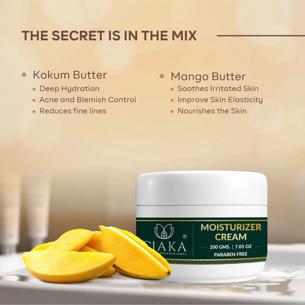 Give your skin the care it truly deserves with our Moisturizer Cream, expertly formulated to provide deep hydration, improve elasticity, and restore your natural glow. Enriched with the goodness of Kokum Butter and Mango Butter, this lightweight, non-greasy formula is your daily solution for smooth, supple, and blemish-free skin.